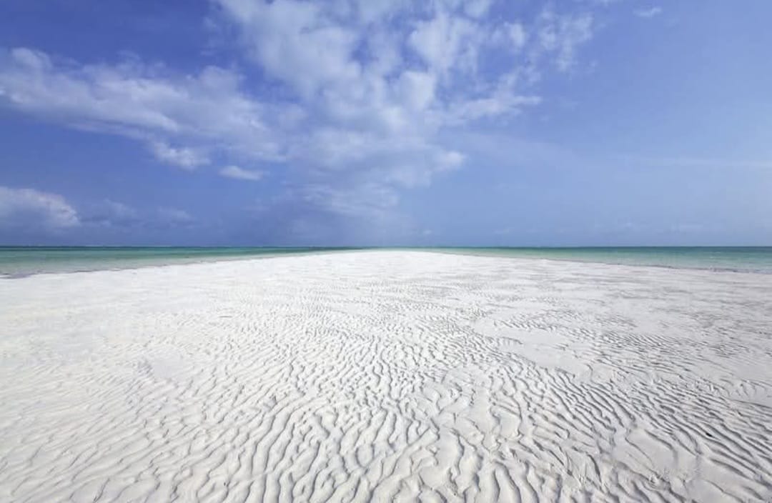 Lingue di sabbia bianchissima che emergono grazie alla bassa marea, creando un paesaggio spettacolare simile alle Maldive.